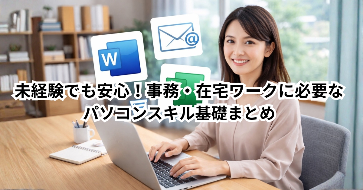 本記事では、未経験でも安心して身につけられる、事務・在宅ワークに必要なパソコンスキルの基礎を、初心者の方にもわかりやすく整理しました。