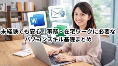 在宅ワークや事務職を目指す際、多くの方が不安に感じるのが「パソコンスキルに自信がない」という悩みです。「未経験でも本当に大丈夫?」「どこまでできれば仕事として通用するの?」こうした疑問を持つのは、ごく...